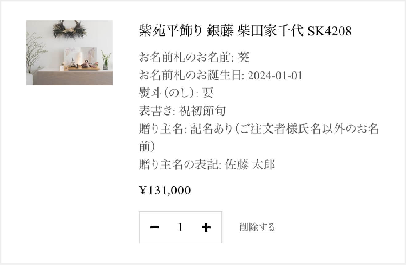 注文を取りやめる場合には「削除する」ボタンを押すと、商品がカートから取り除かれます。