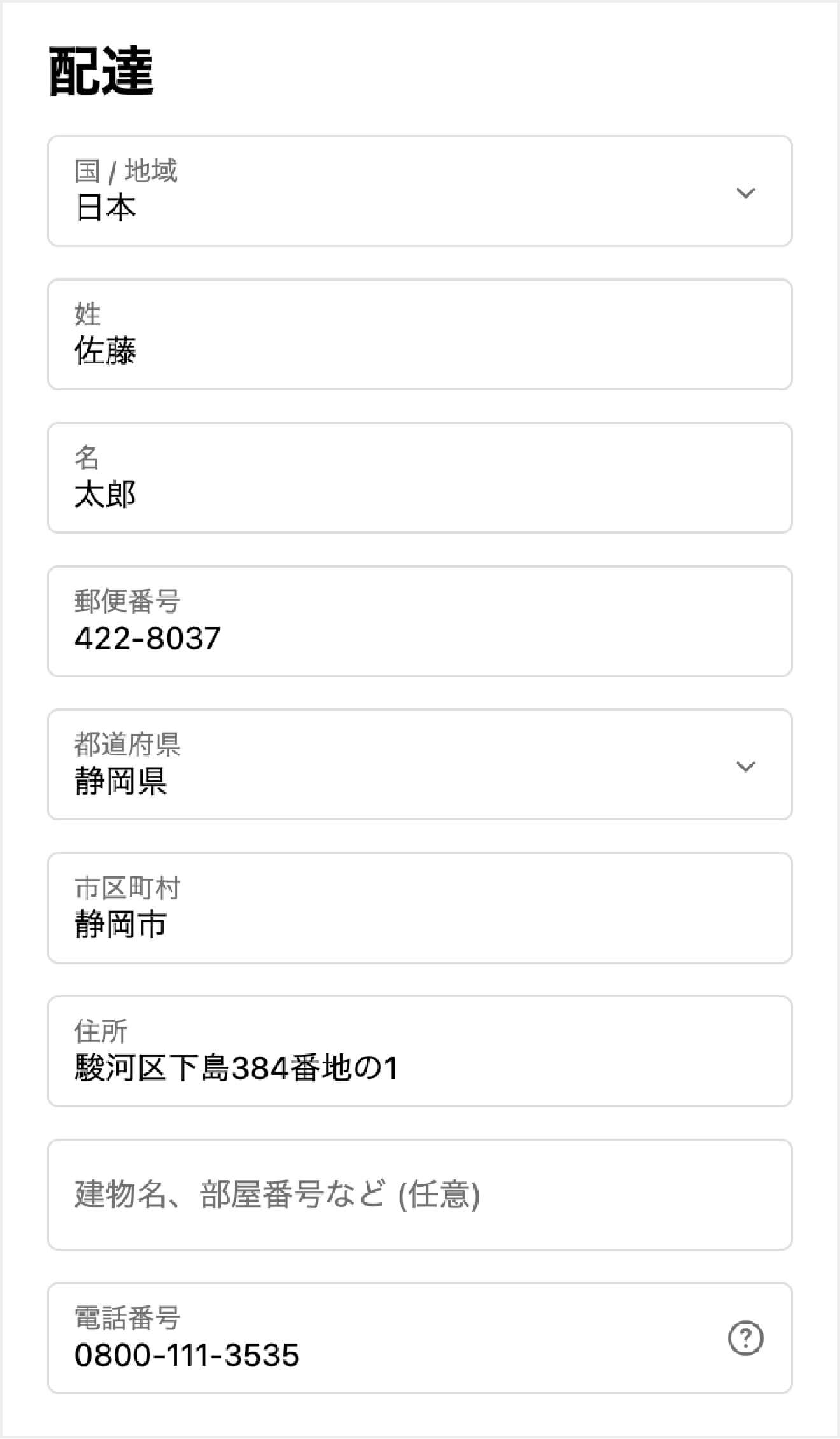 請求先住所が配送先ご住所と異なる場合は、「配送先住所を請求先住所として使用する」のチェックボックスを外して、請求先ご住所を入力してください。