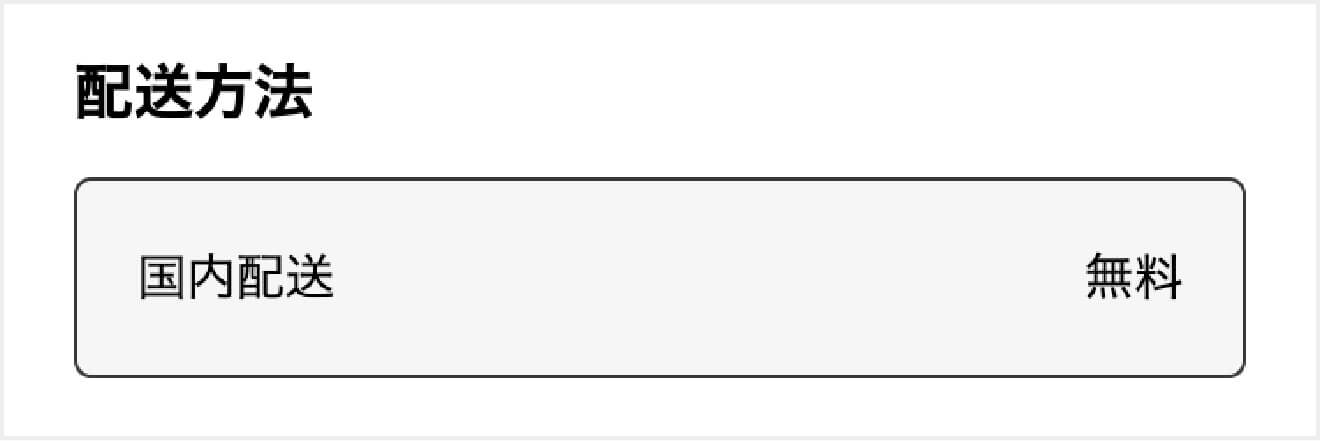 ご入力いただいた配送先住所に基づいた配送方法が表示されますので、配送方法・配送料金をご確認ください。