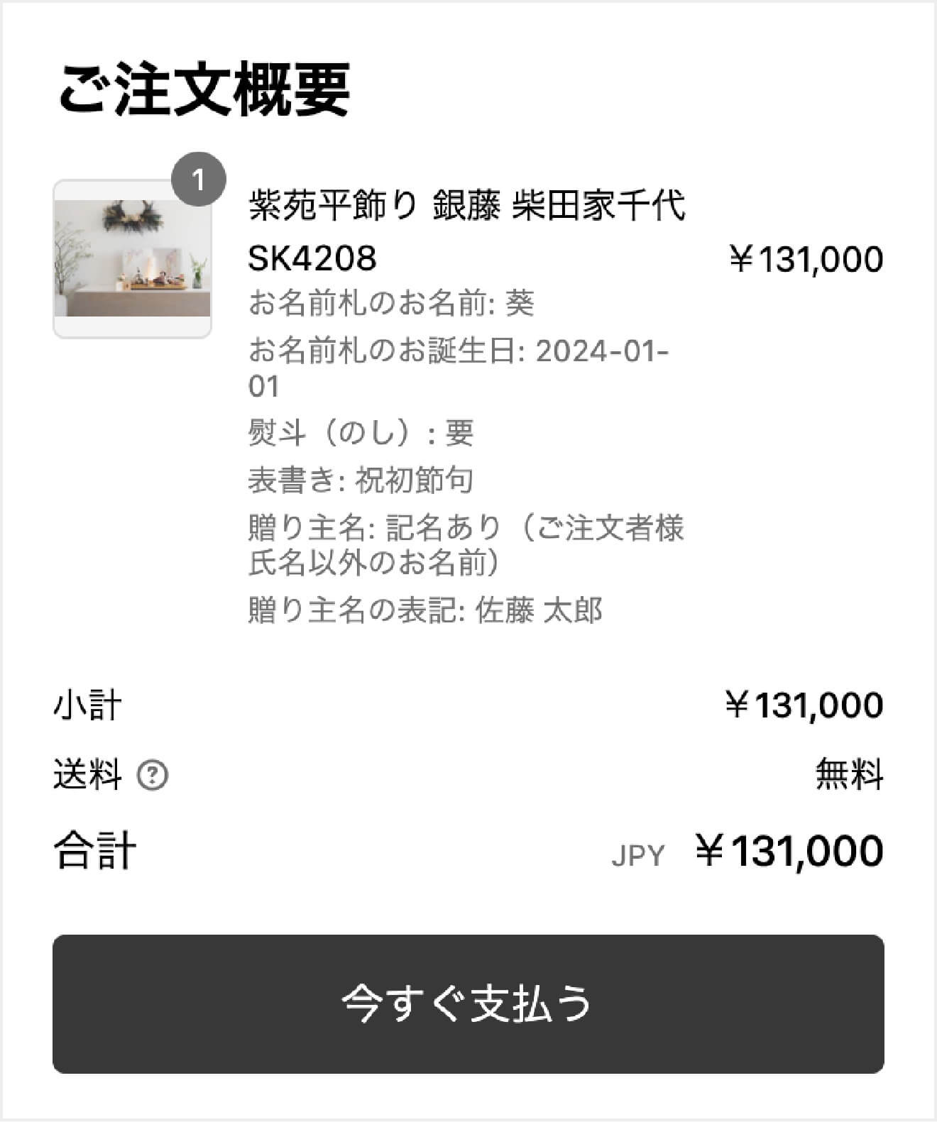 必要事項の入力を終え、ご注文概要に間違いがなければ「今すぐ支払う」ボタンを押してください。