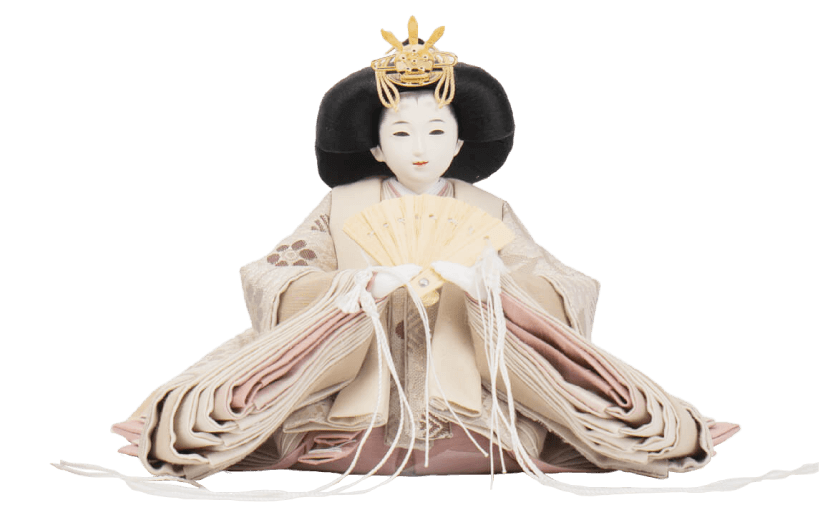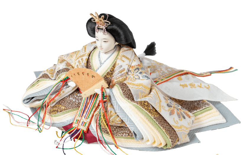階段状の飾台に三人官女と重箱、お篭、牛車などを加えた豪華なタイプ。かつては七段飾りや五段飾りが人気でしたが、現代では三段飾りが主流です。