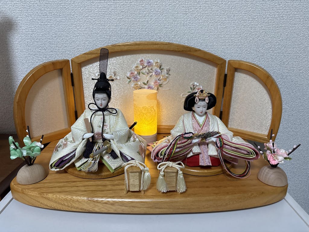 雛人形・平飾台・屏風・親王台・前飾り・花・灯り