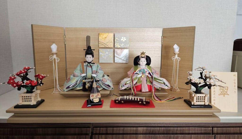お道具は健やかな成長を願う琵琶と琴のセット。